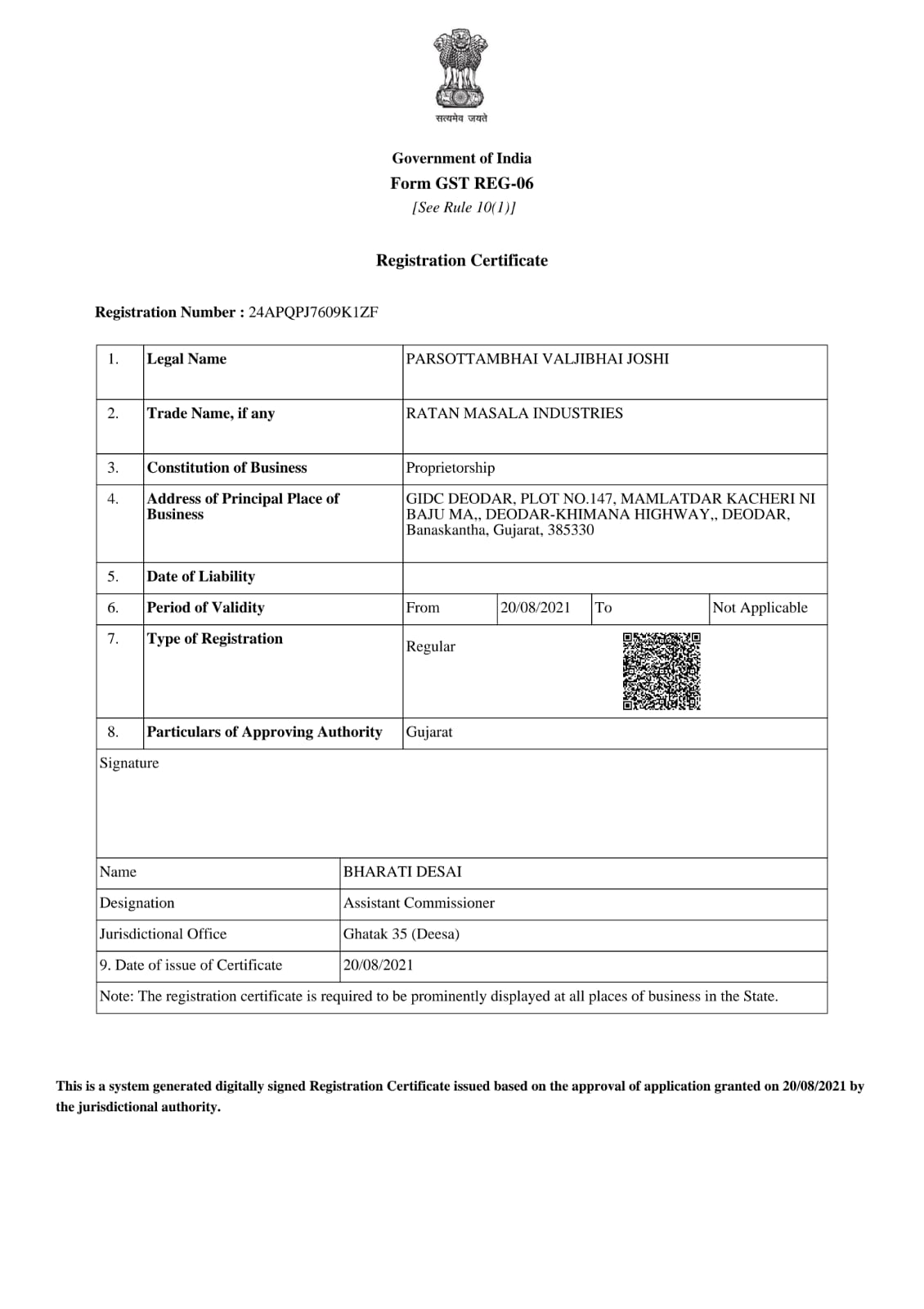 Registered under Goods and Services Tax for legal commercial operations in India.